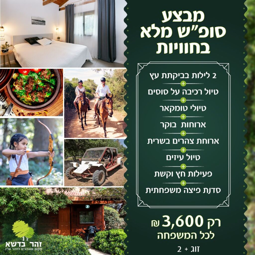 ✅ 2 לילות בבקתת עץ משפחתית +ארוחות בוקר